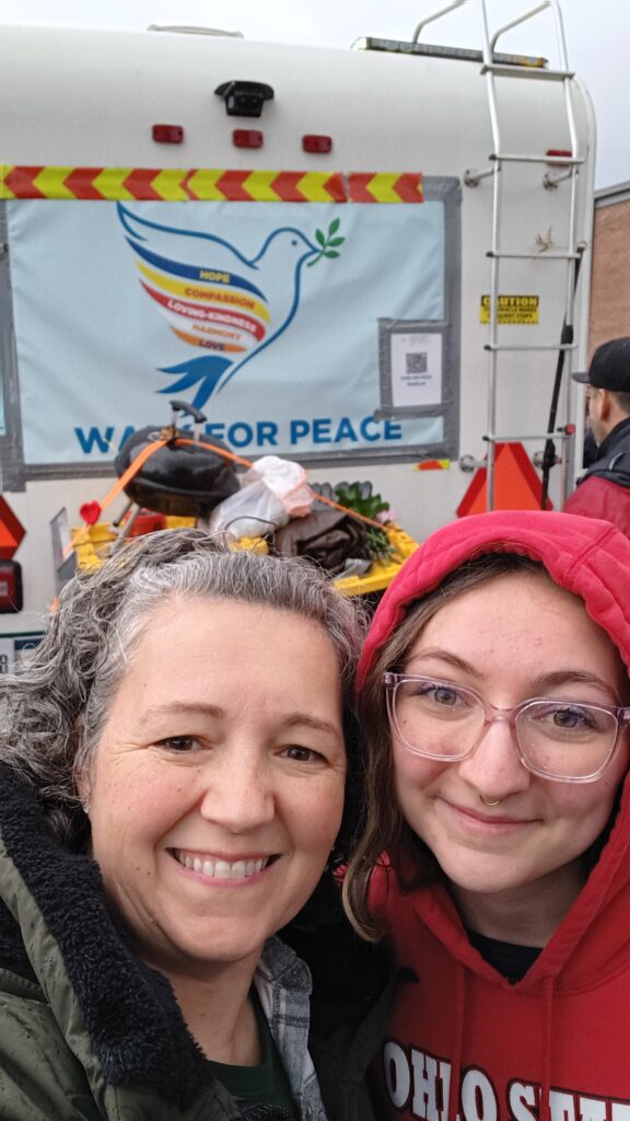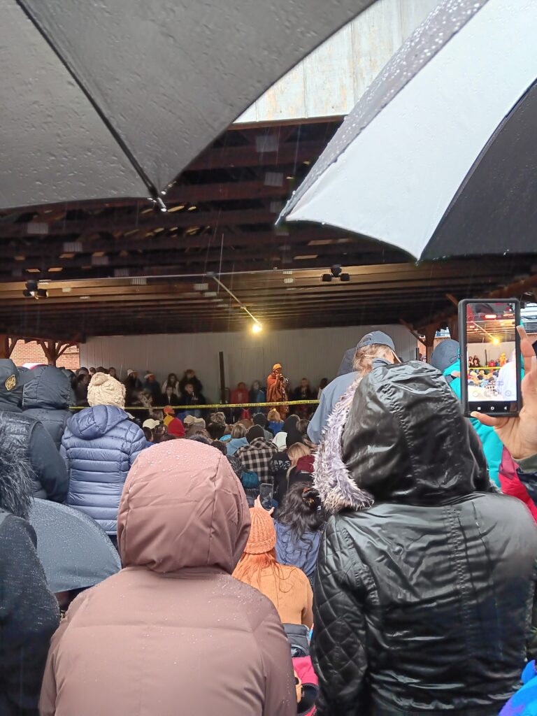 While we stood there for hours, I noticed how fragile inner peace can feel. Some people pushed forward to get under the pavilion and out of the rain. Some couldn’t physically stand that long and fainted or left their spots, which were quickly filled. Umbrellas protected some people but dripped water onto others. And then there were quiet acts of kindness—a person passing out hand warmers, a woman giving her hat to someone sitting in a chair with nothing to cover her head.